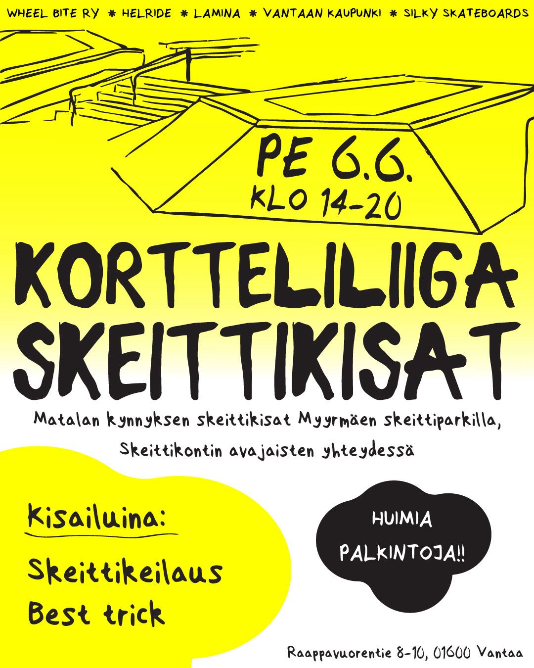 Perjantaina 6.6 järjestämme Helriden Skeittikontin avajaisten yhteydessä matalan kynnyksen skeittikisat. Ohjelmassa mm. skeittikeilausta, best trickejä ja huimia palkintoja!